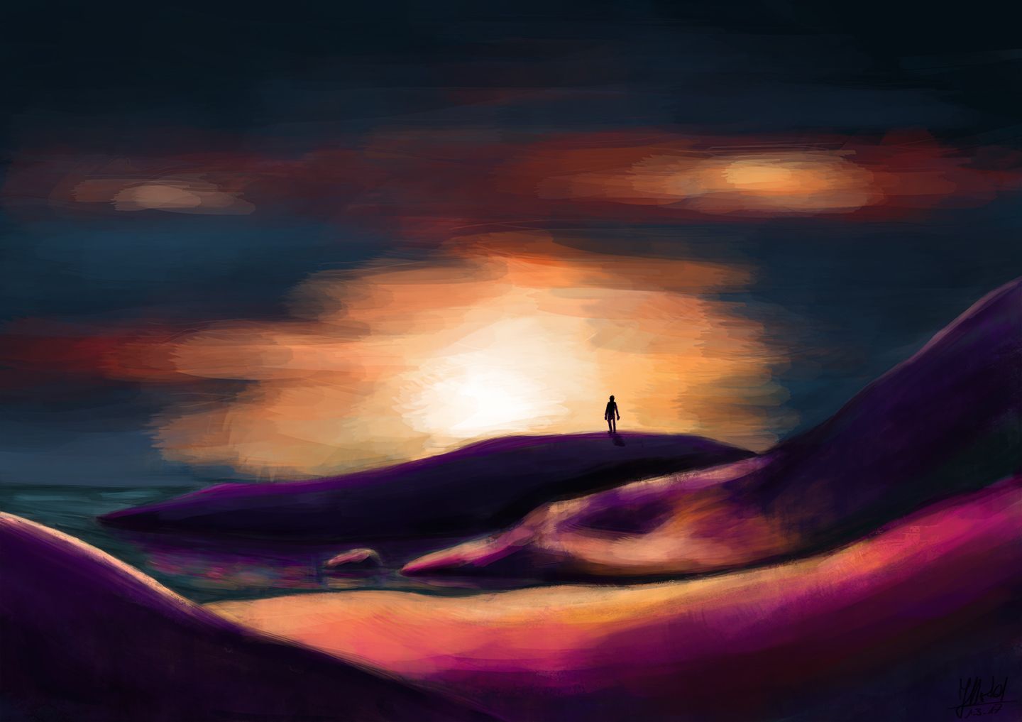 Landschaften, die mit Aquarell oder digital gemalt wurden